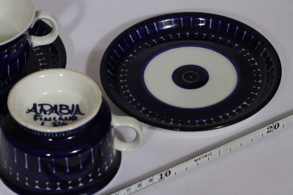 Arabia Valencia teekupit, sininen, 2 kpl, suunnittelija Ulla Procope, käsinmaalattu, signeerattu kuva 2
