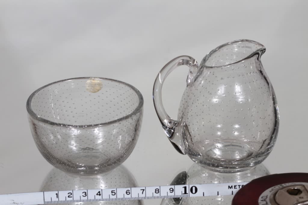| Materiaali | pyörittäen puhallettu ja piikkimuottiin puhallettu lasi |
