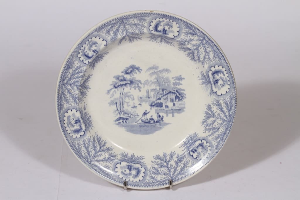 Albion Pottery lautanen, matala, suunnittelija , matala, kuparipainokoriste, maisema-aihe