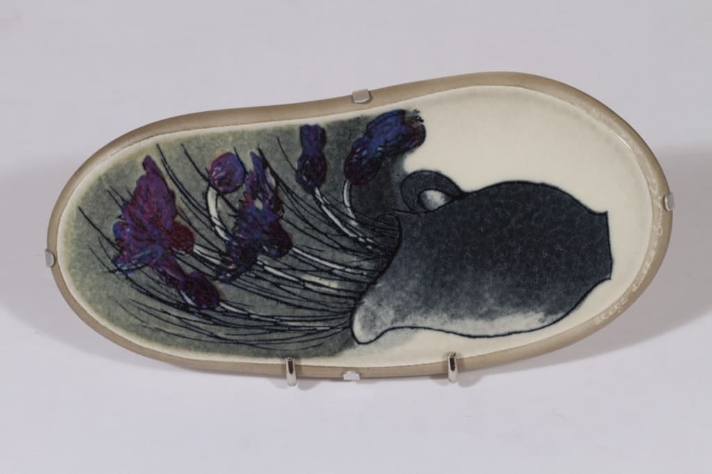 Arabia seinälaatta, Ruiskukat, suunnittelija Heljä Liukko-Sundström, Ruiskukat, serikuva, lysteri, signeerattu