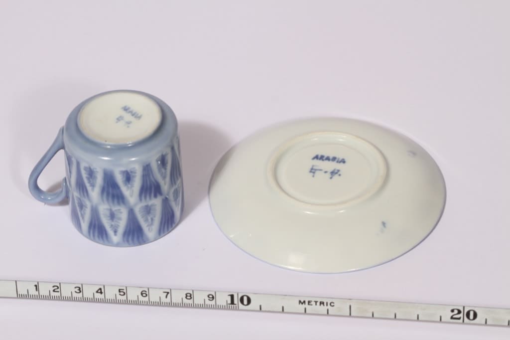 Taiteilijan oma signeeraus: ” ARABIA E.T -47”. Tomulan alkuaikojen tuotantoa Arabialla.