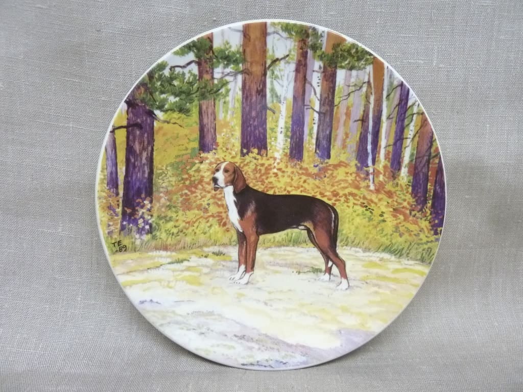 Arabia Suomen kennelliitto koristelautanen, Suomen Ajokoira, suunnittelija , Suomen Ajokoira, serikuva, Koira-aihe kuva 2