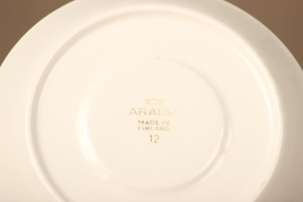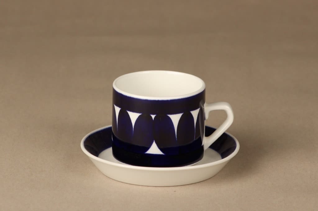 Kupin korkeus 7 cm, halkaisija 8 cm. Asetin halkaisija 13,5 cm.