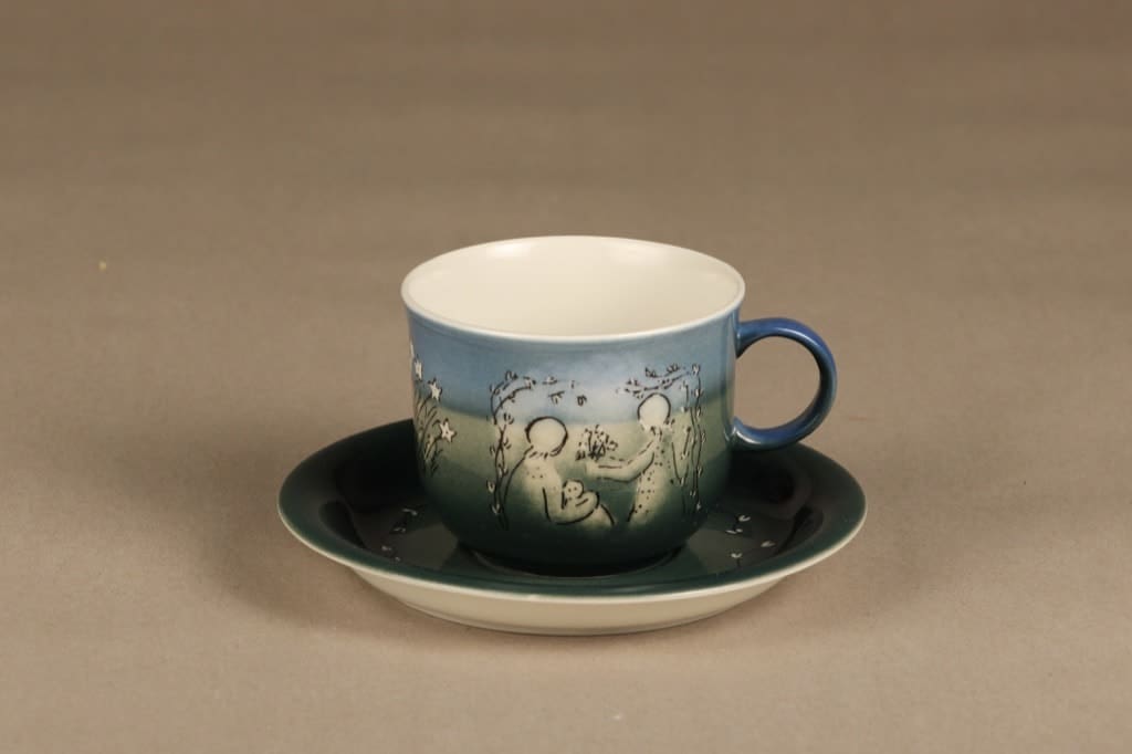 Kupin korkeus 7,5 cm, halkaisija 9,3 cm, asetin halkaisja 16 cm.