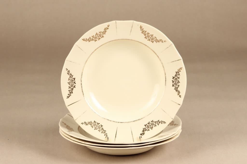 Arabia Irja lautaset, syvä, 4 kpl, suunnittelija , syvä, painettu, kultakoriste
