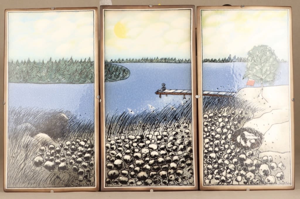 Triptyykki koostuu kolmesta laatasta nimeltään Laiturilla, Norppa ja Juhannuskokko.