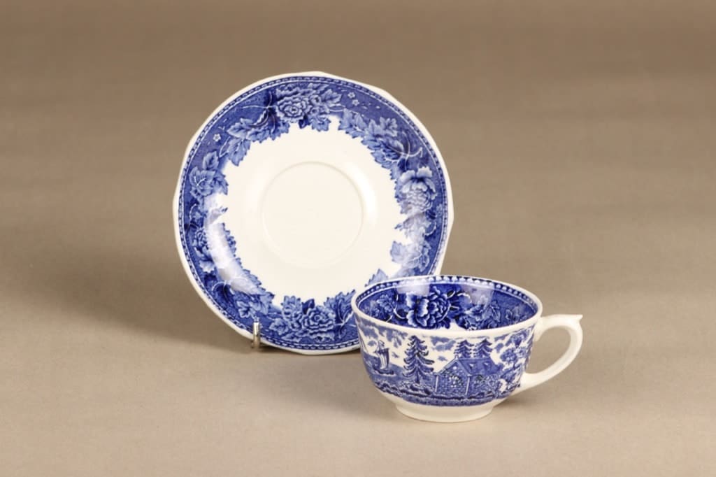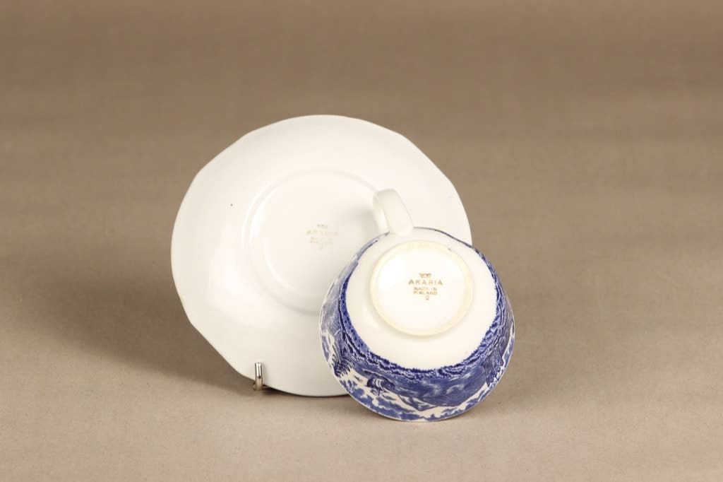 Kupin korkeus 5 cm, halkaisija 9,3 cm. Asetin halkaisija 14,5 cm.