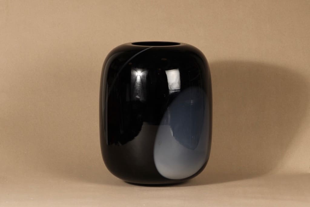 Iittala Blues taidelasimaljakko, signeerattu, suunnittelija Timo Sarpaneva, signeerattu, suuri, signeerattu, numeroitu