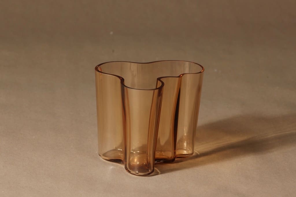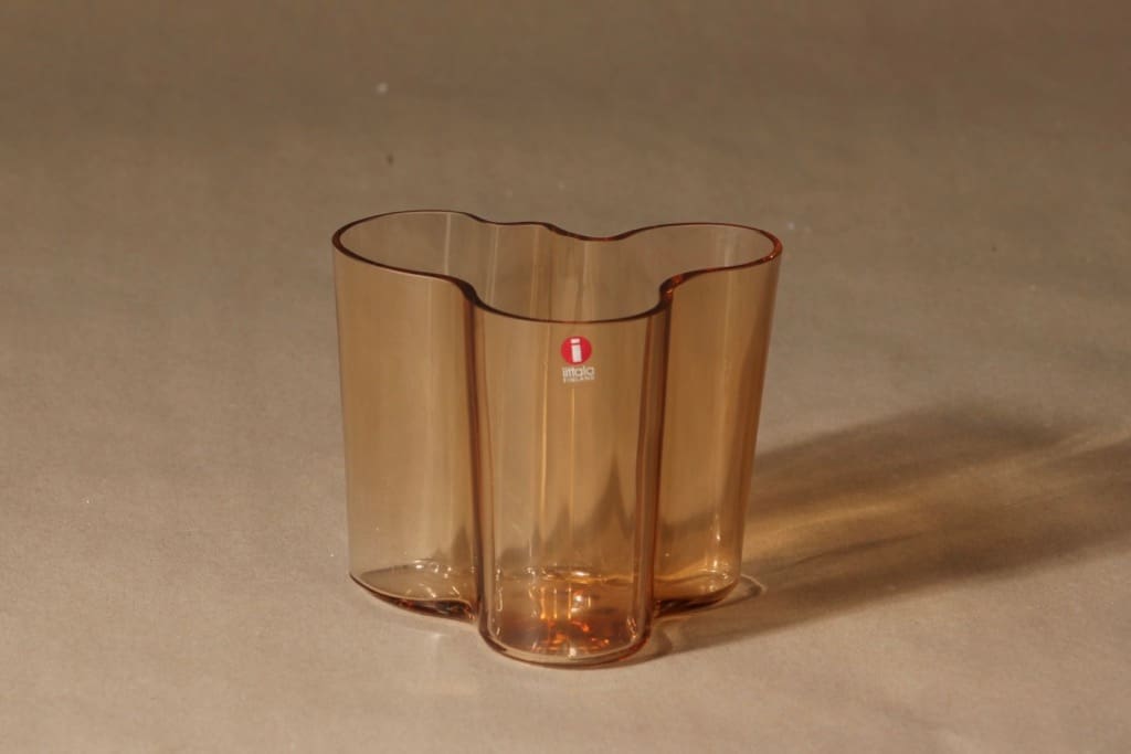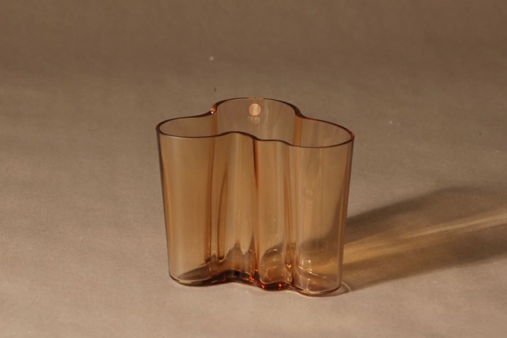 Iittala Aalto  maljakko, rionruskea, suunnittelija Alvar Aalto, konesigneeraus