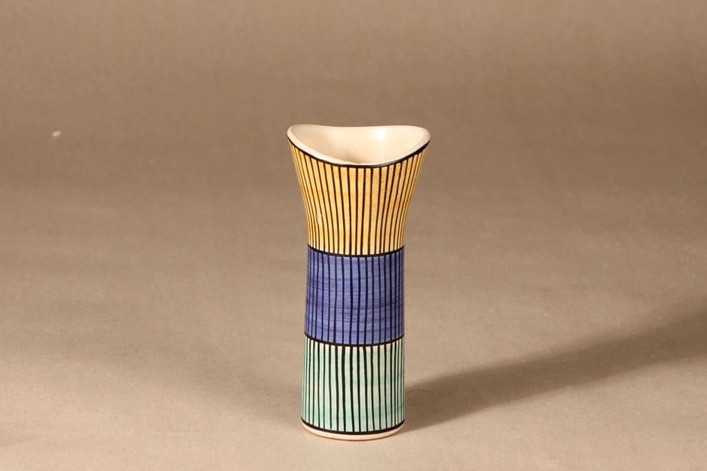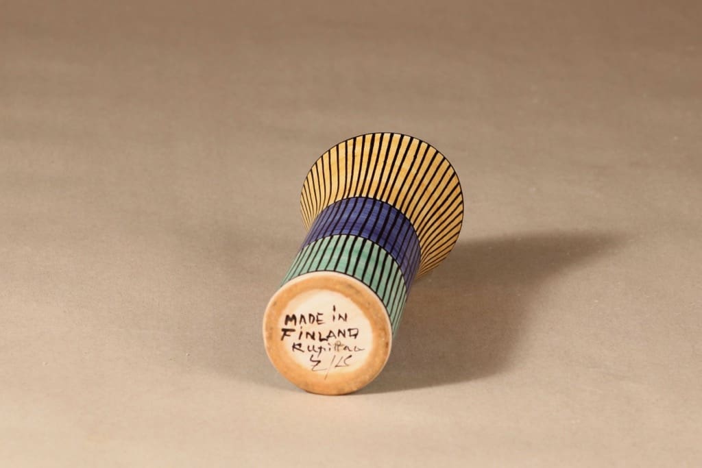 Kupittaan savi maljakko, signeerattu, suunnittelija Laila Zink, signeerattu, raitakoriste kuva 2
