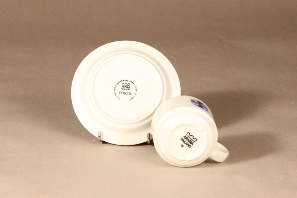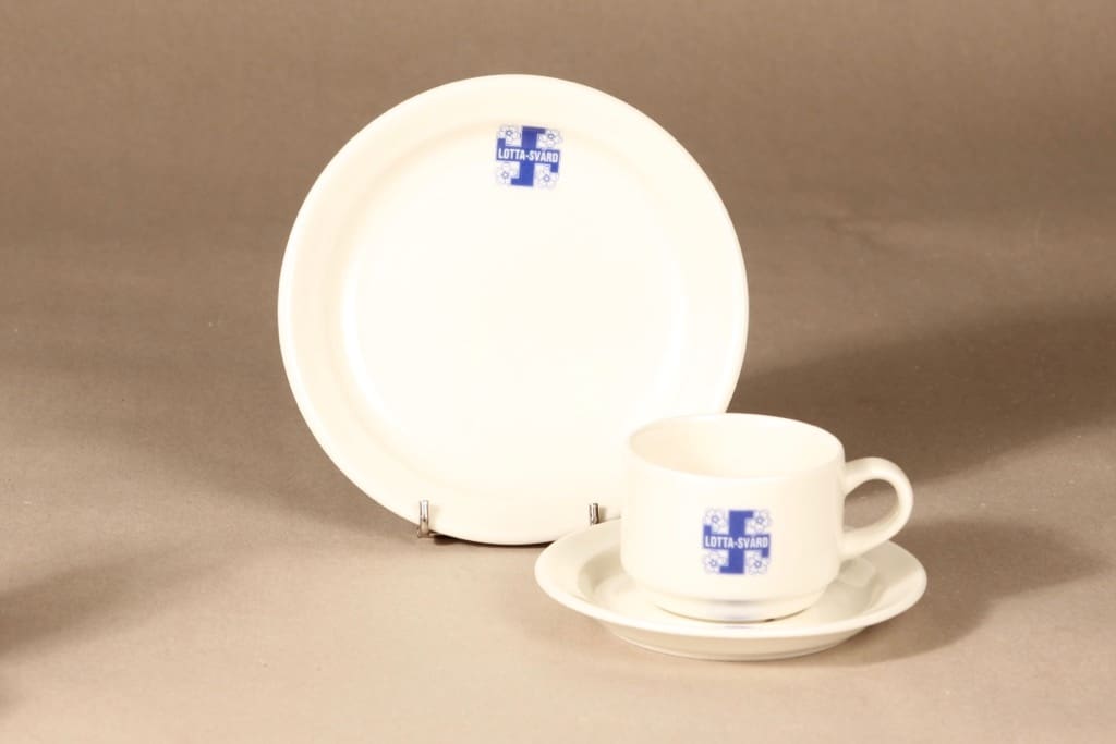 Kuppi 5.5 * 7 cm, asetin halkaisija 13.5 cm, pullalautasen 16.7 cm
