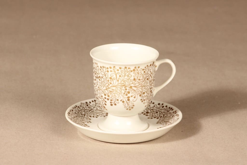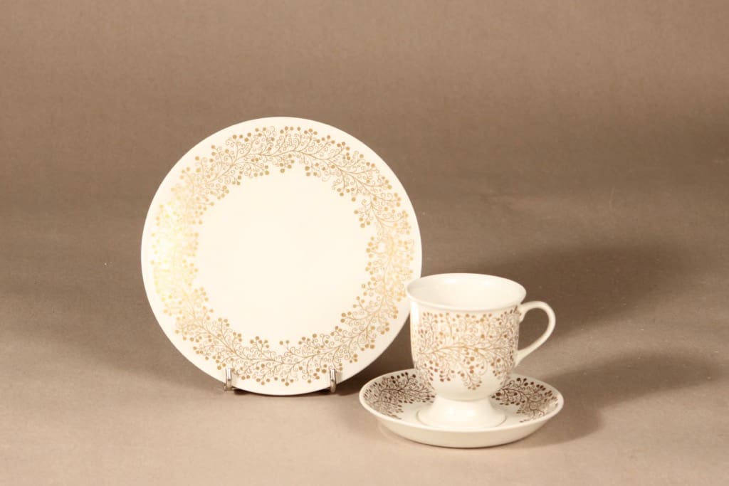 Arabia kahvikuppi ja lautaset, kulta, suunnittelija ,