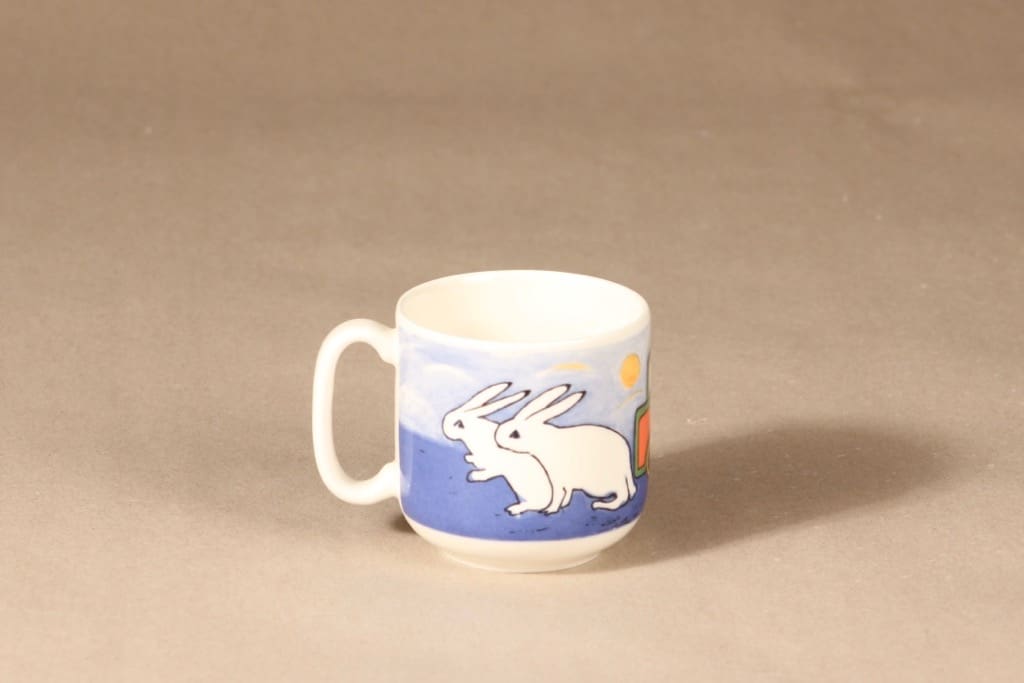 Arabia lautanen ja muki, Matkalla maailmalle, 2 kpl, suunnittelija Heljä Liukko-Sundström, Matkalla maailmalle, eläinaihe kuva 4