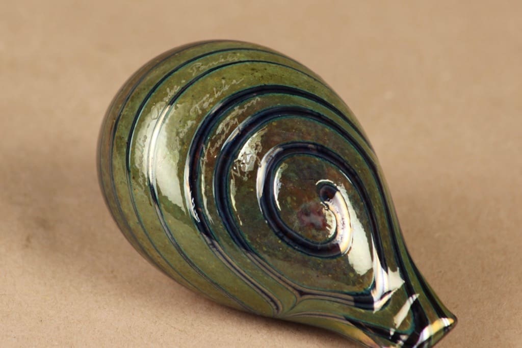 Vihertävä, lysteri filigraani, kirkas pää. Signeerattu Oiva Toikka Nuutajärvi Notsjö