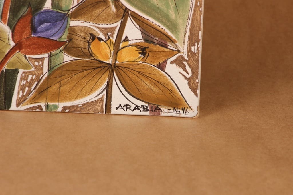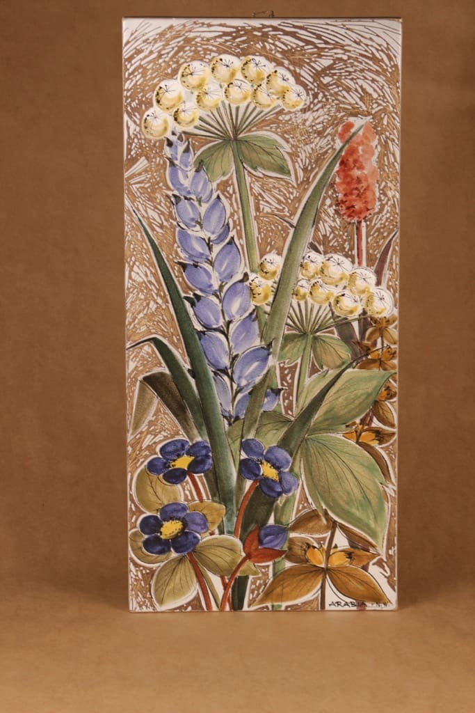 Arabia seinätaulu, käsinmaalattu, suunnittelija Naile Wafin, käsinmaalattu, suuri, signeerattu, kukka
