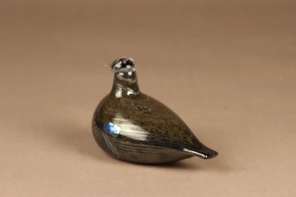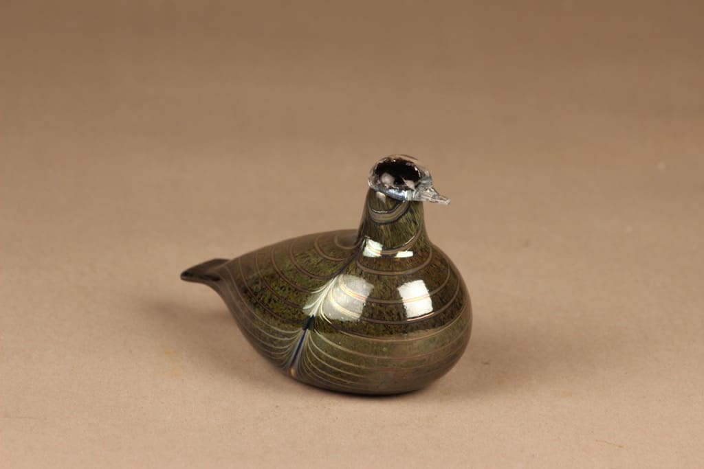 Signeerattu O.Toikka Nuutajärvi. Kuuluu Toikan suunnittelemaan Muuttolinnut-sarjaan. Alkuperäisessä laatikossa.
