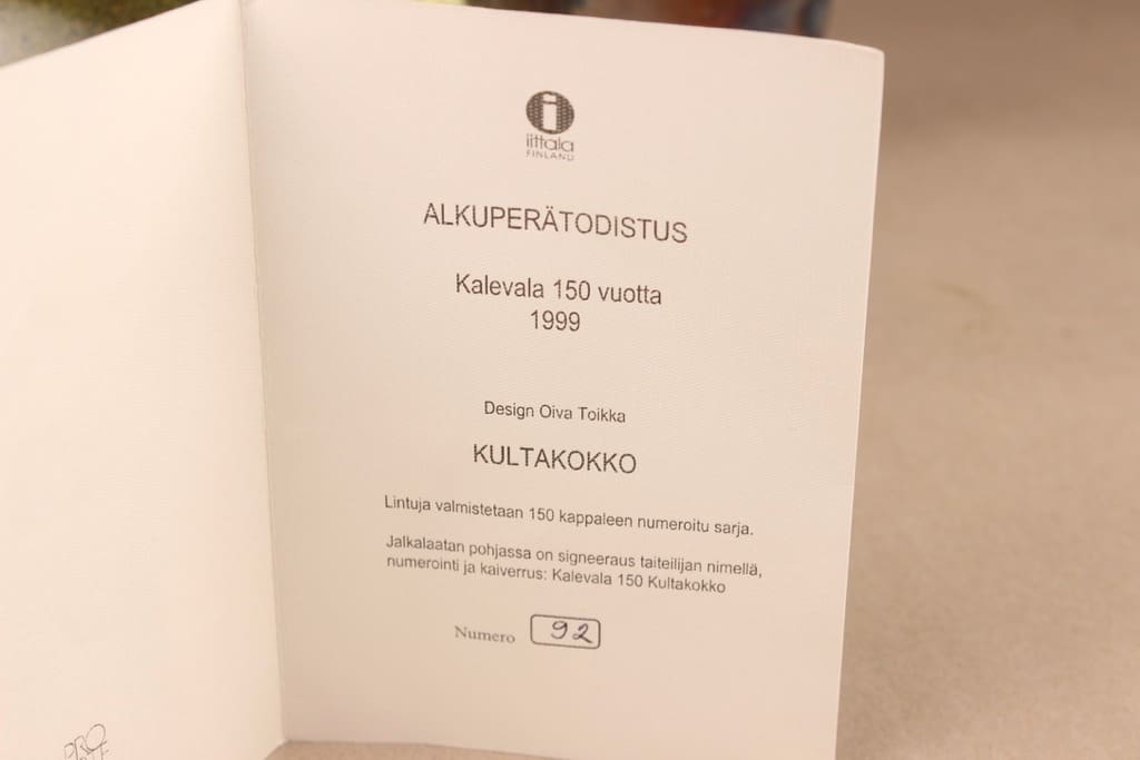 Signeerattu O.Toikka Nuutajärvi 92/150 Kalevala 150 Kultakokko