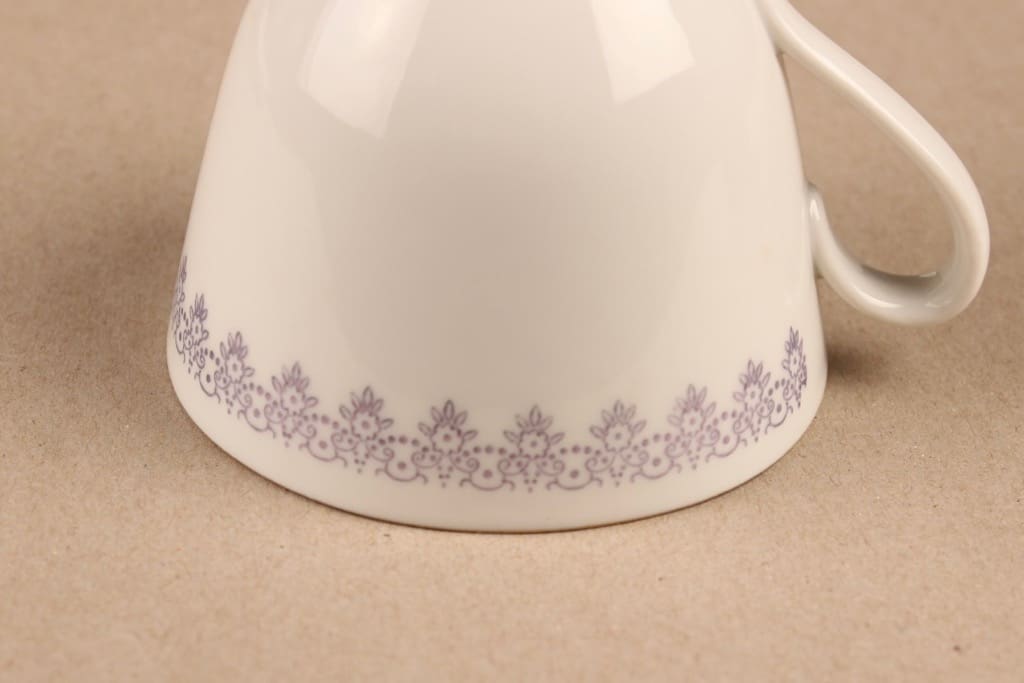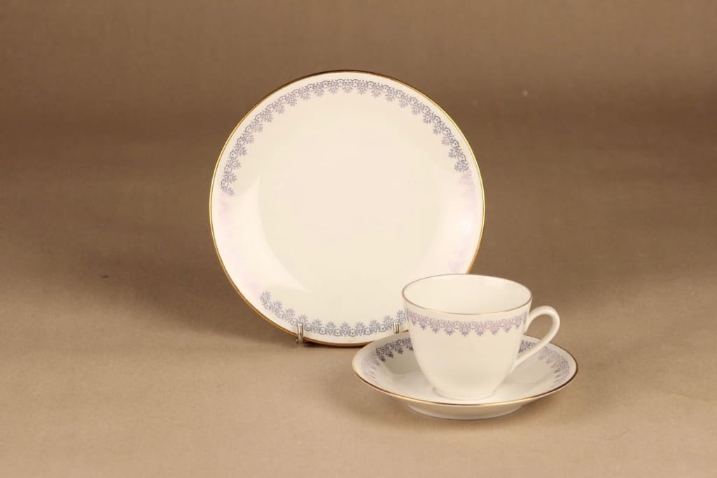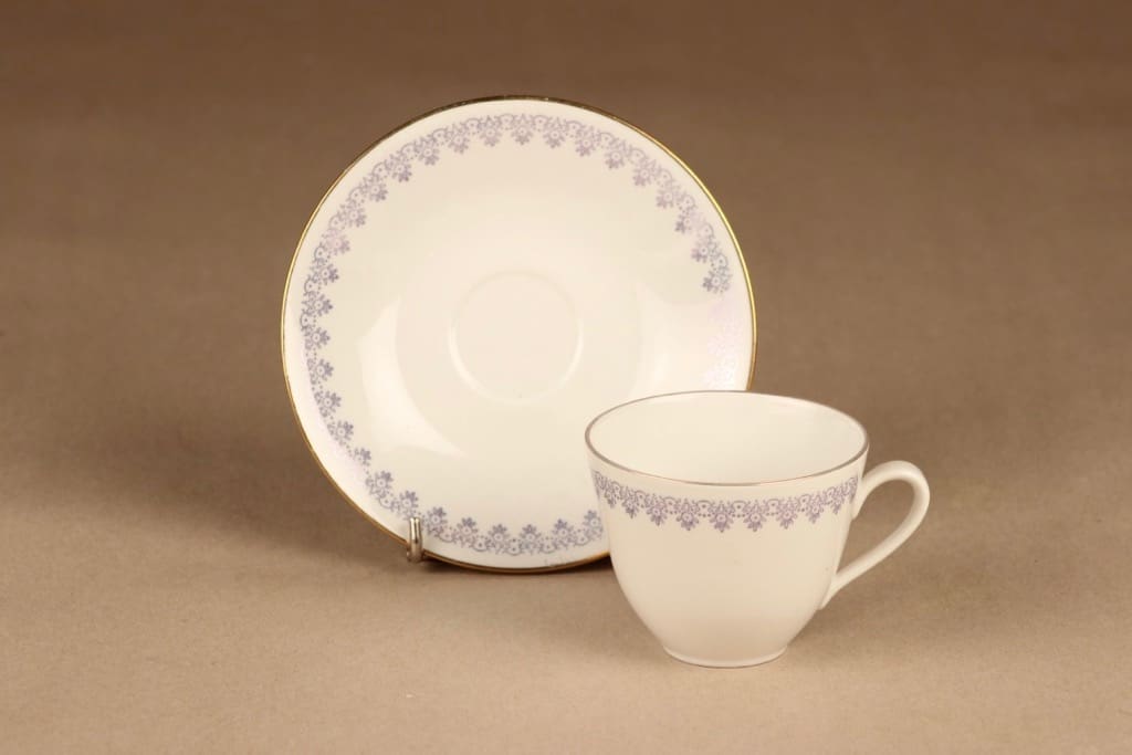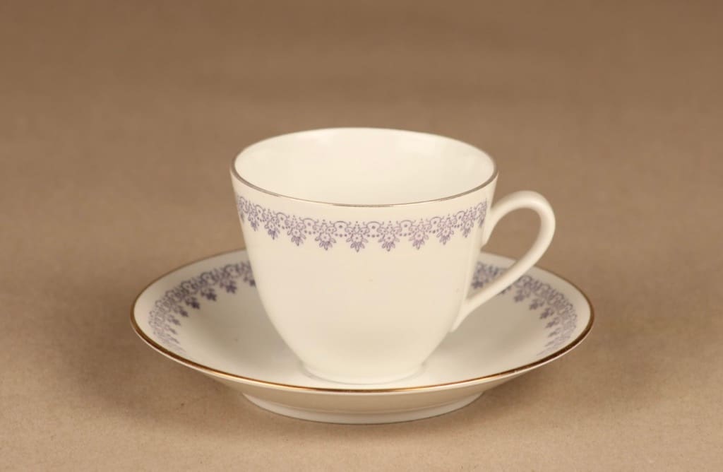 kuppi 6*7.8 cm, asetin halkaisija 13.5 cm, kakkulautasen 17.5