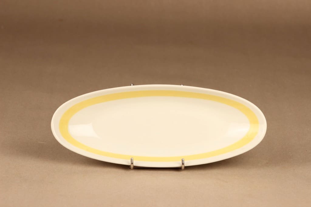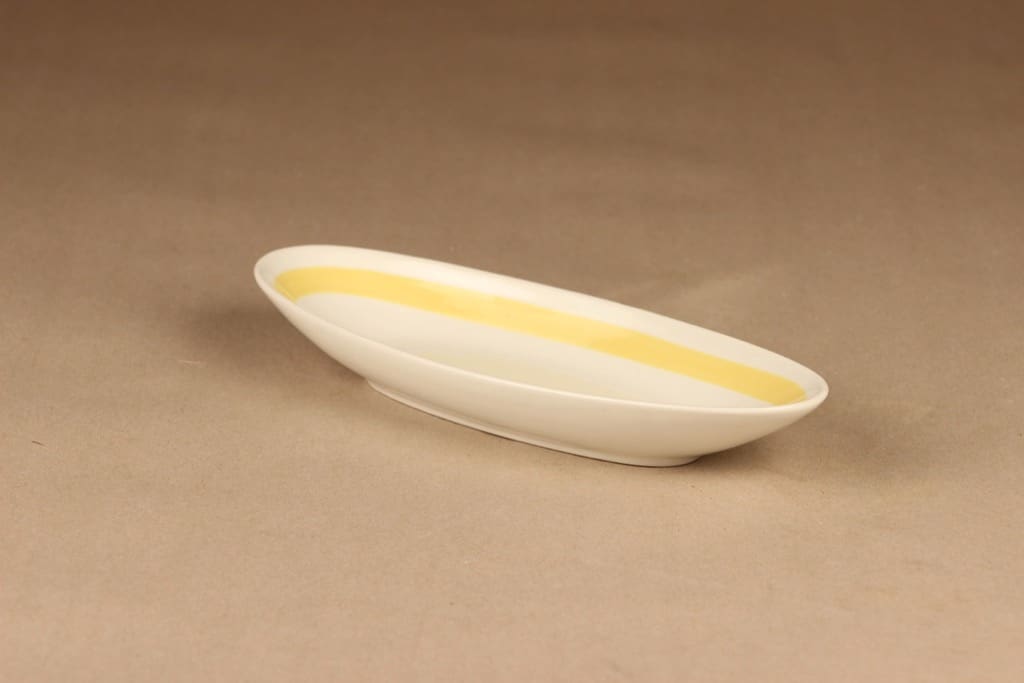 Arabia Kelta-valko sillivati, valkoinen, keltainen, suunnittelija Kurt Ekholm, raitakoriste