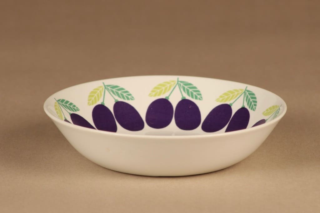 Arabia Pomona Luumu lautanen, syvä, suunnittelija Raija Uosikkinen, syvä, serikuva, luumu kuva 2