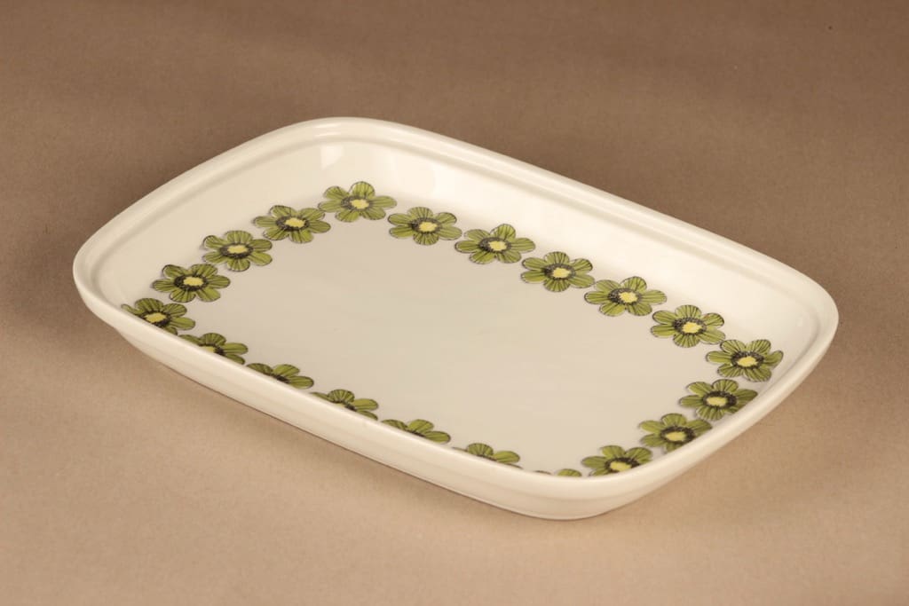Arabia Primavera tarjoiluvati, vihreä, suunnittelija Esteri Tomula, kukka, retro kuva 2