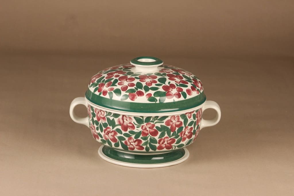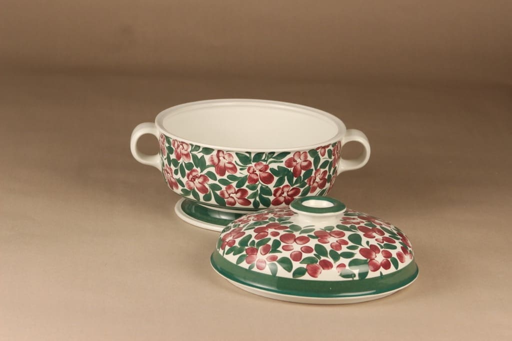 Arabia Purpurijenkka liemimalja, 2.85 l, suunnittelija Ulla Procope, 2.85 l, kukka, käsinmaalattu, terriini