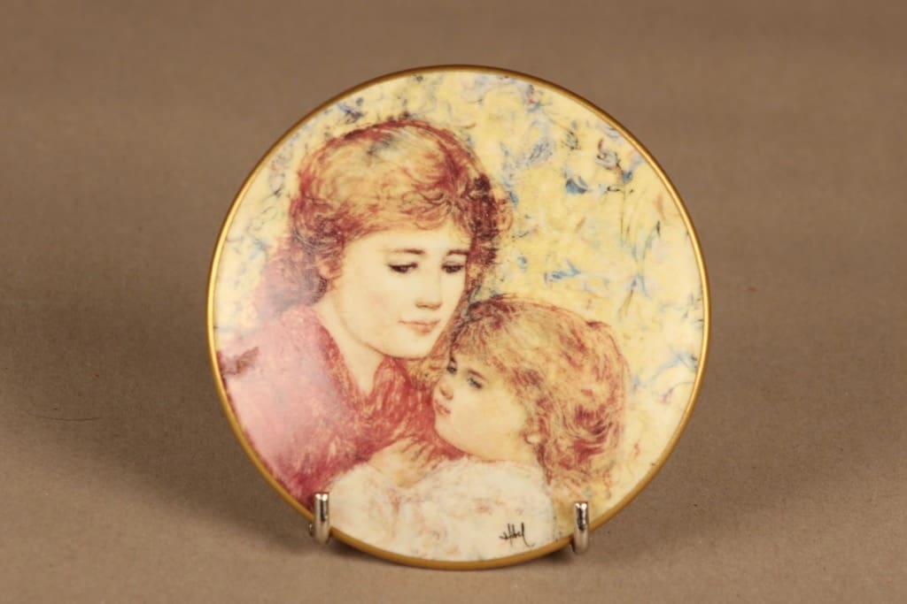Arabia Äidin rakkaus seinälautanen, numeroitu, suunnittelija Edna Hibel, numeroitu, äiti, lapsi