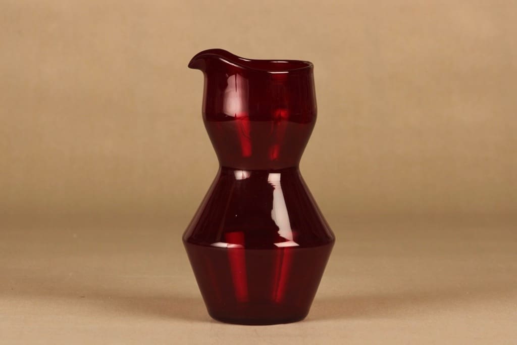 Riihimäen lasi SikSak kaadin, rubiininpunainen, suunnittelija Helena Tynell,