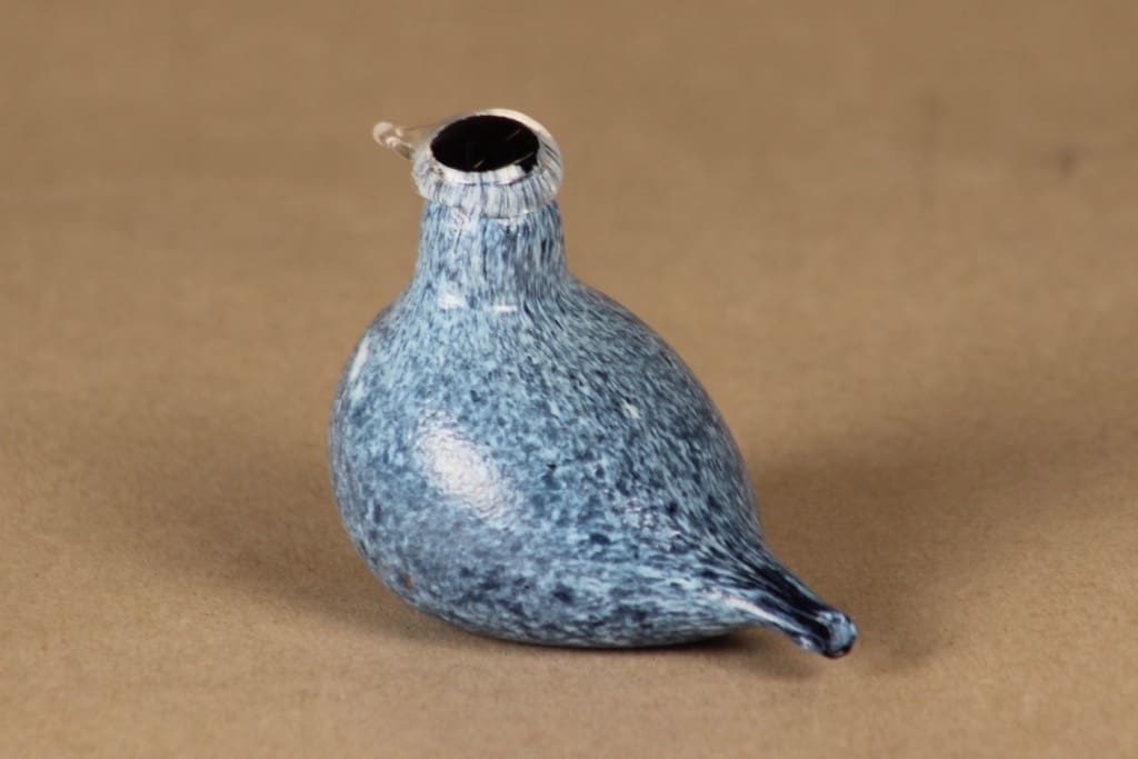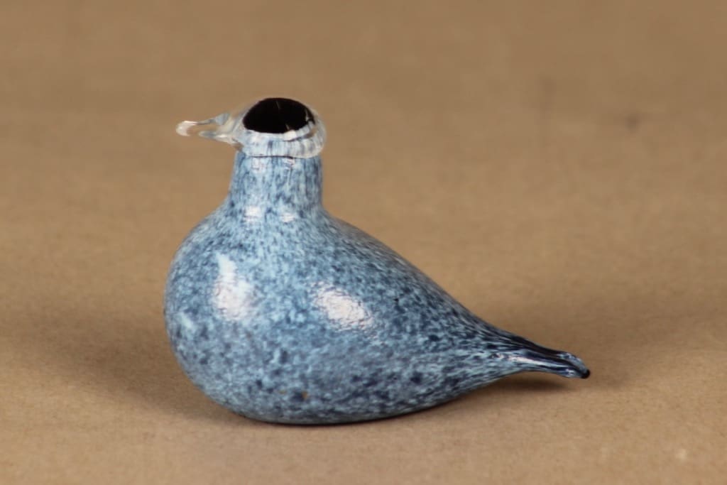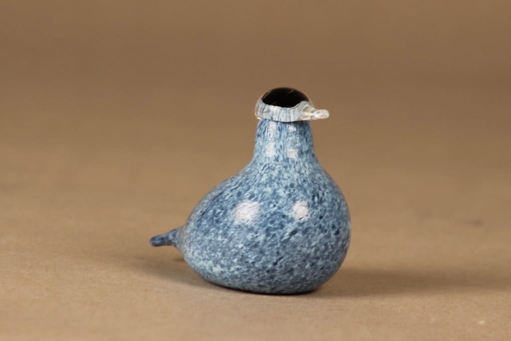 Nuutajärvi yrityslintu, Sinitiainen pieni, suunnittelija Oiva Toikka, Sinitiainen pieni, signeerattu