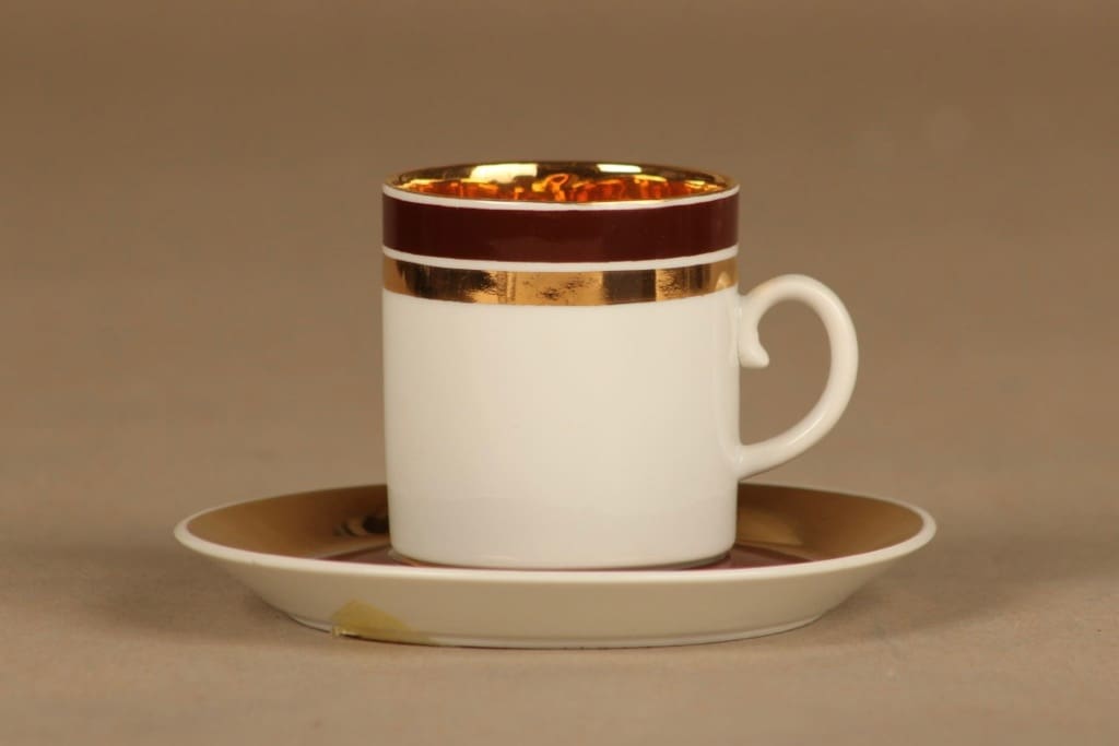Arabia Raitakulta mokkakuppi, ruskea, kulta, suunnittelija 3