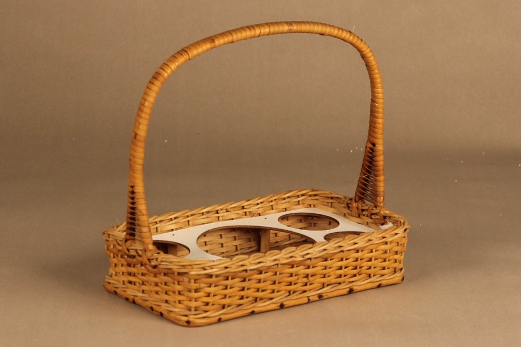Täydellinen mehuastiasto. Alkuperäinen pajukori rottinkikantimella.