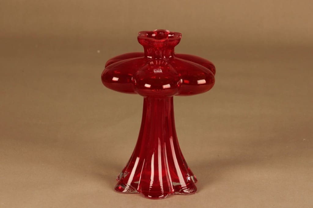 Riihimäen lasi Päivänkukka maljakko, punainen, suunnittelija Helena Tynell,