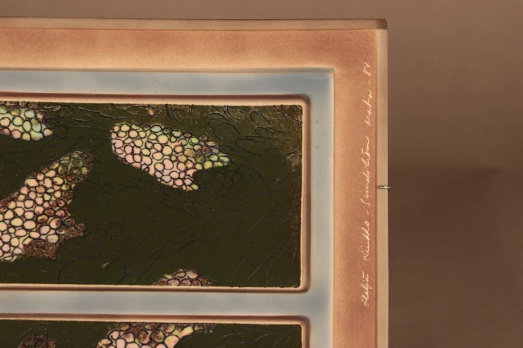 Arabia Pro Arte seinätaulu, Sireeni hohtavan valkoisena, suunnittelija Heljä Liukko-Sundström, Sireeni hohtavan valkoisena, signeerattu kuva 2