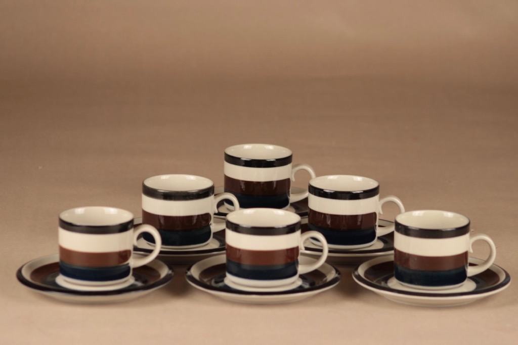 Arabia Kaira kahvikuppi, ruskea, musta, valkoinen, 6 kpl, suunnittelija Anja Jaatinen-Winquist, raitakoriste kuva 4