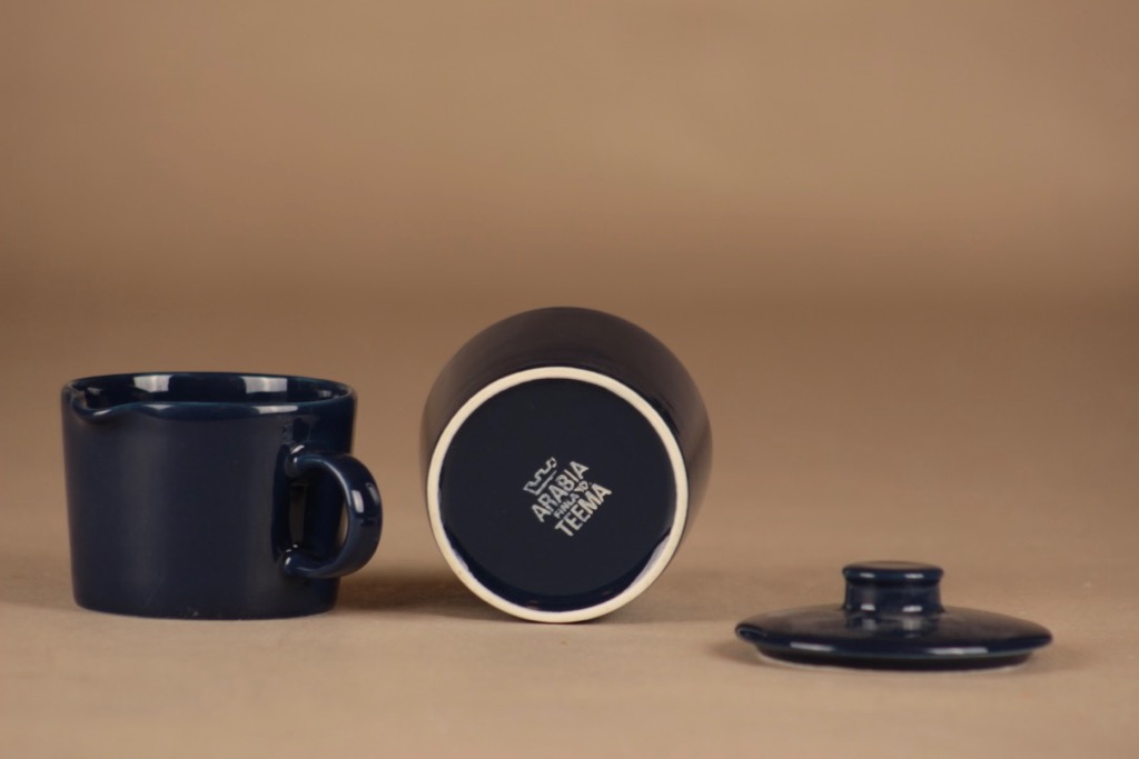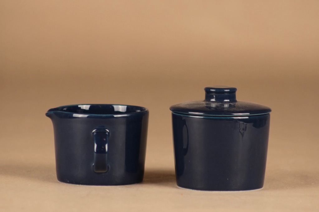 Arabia Teema sokerikko ja kermakko, tummansininen, suunnittelija Kaj Franck,