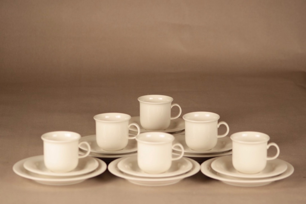 Arabia KS Arctica kahvikuppi ja lautaset(2), valkoinen, 6 kpl, suunnittelija Inkeri Leivo,