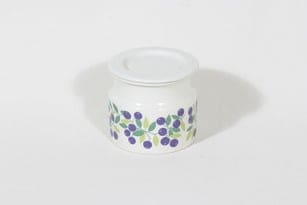 Arabia Pomona purnukka, mustikka, suunnittelija Raija Uosikkinen, mustikka, serikuva, retro